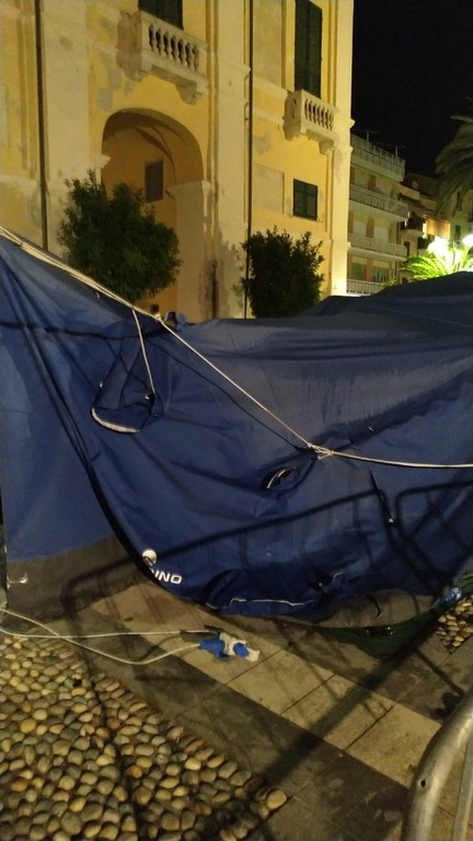 Finale, vandalizzata la tenda della Protezione Civile: a salvarla il sistema di sicurezza
