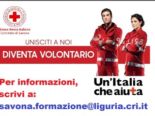 Croce Rossa Italiana – Comitato di Savona, apre le iscrizioni al corso di accesso per diventare volontario. Al contrario di ciò che si possa pensare, Croce Rossa non è solo ambulanza, ma le attività di volontariato ruotano, attraverso opportuni percorsi formativi, a 360 gradi nell'ambito della Salute, del Sociale, dell’Emergenza, del Diritto Internazionale ed Umanitario.