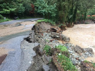 In località Cimavalle, lungo la Sp 12, la strada è franata nel fiume