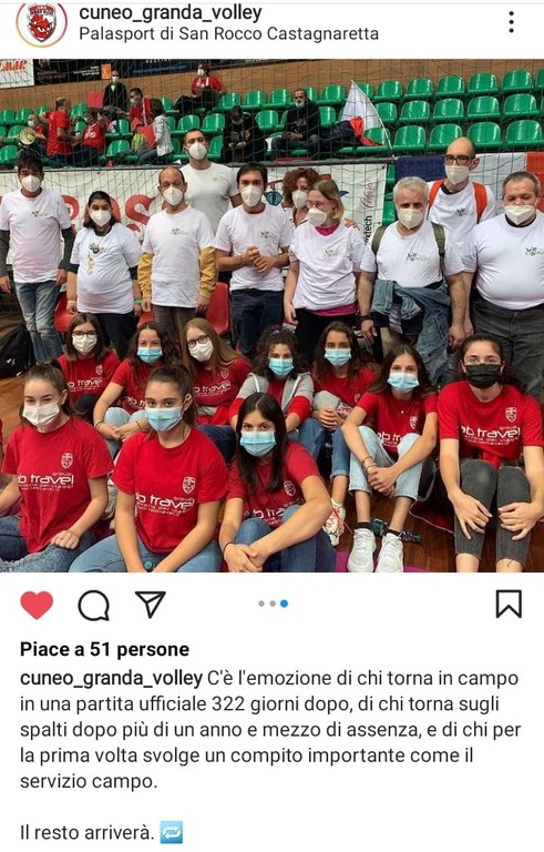 "Con l'inizio del campionato in data 10 ottobre, c'è stata la prima uscita ufficiale durante la quale i nostri ragazzi erano impegnati a bordocampo nelle varie postazioni assegnate per la raccolta dei palloni insieme a una ragazza della squadra giovanile della Cuneo Granda Volley. Lo scopo di questo progetto è quello di sperimentare, guardando e praticando di persona, cosa voglia dire far parte di uno staff che assiste le giocatrici" spiegano dall'associazione savonese.