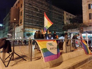 Il presidio organizzato da Arcigay Savona ha visto partecipare rappresentanti di Anpi, Arci, Aned, i sindacati con la Cgil e la Uil ed esponenti politici del Pd come il consigliere regionale Roberto Arboscello, il vicesindaco e assessore Elisa Di Padova e diversi consiglieri dem e l’assessore di Italia Viva Barbara Pasquali.
