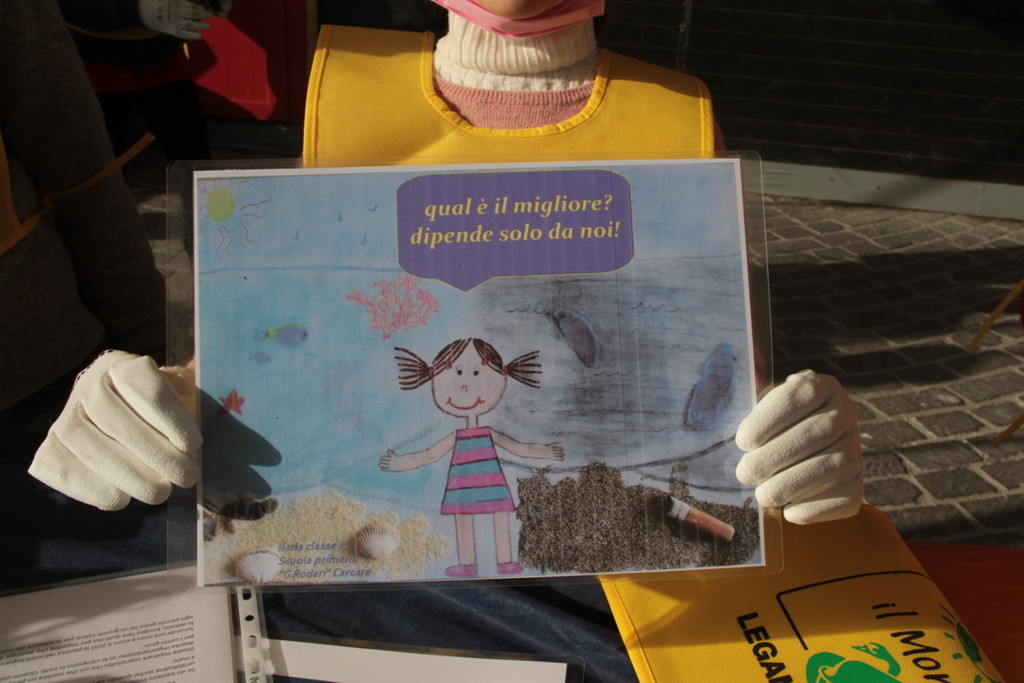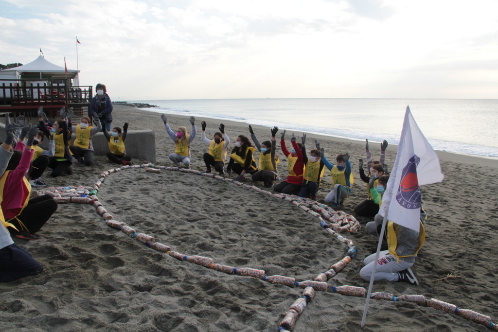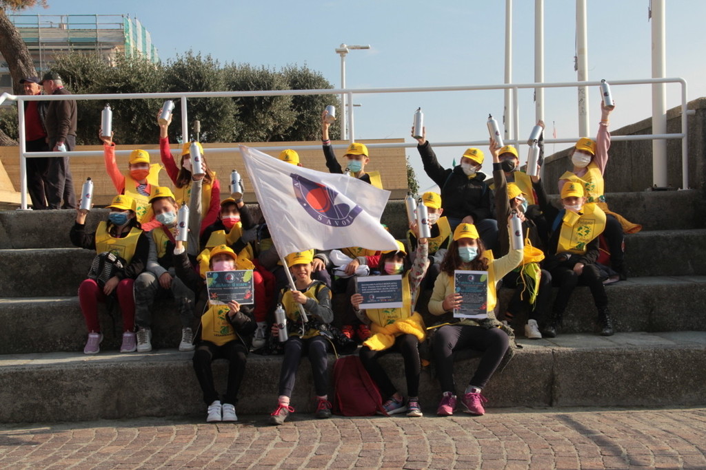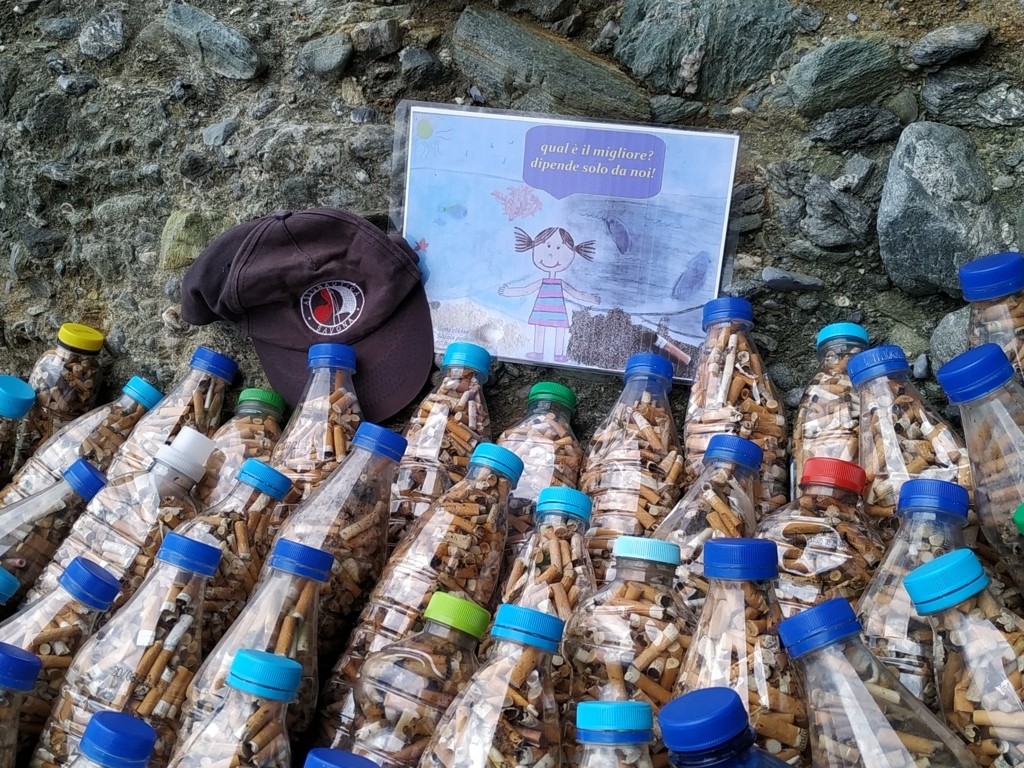 Due scolaresche della scuola primaria “Della Rovere” si sono date appuntamento sulla spiaggia “La Marinella” per raccogliere rifiuti e creare un'installazione artistica a forma di pesce allineando più di 130 bottiglie contenenti complessivamente circa 59000 mozziconi, raccolti durante la campagna “In spiaggia senza filtri” del 2019 e del 2021.