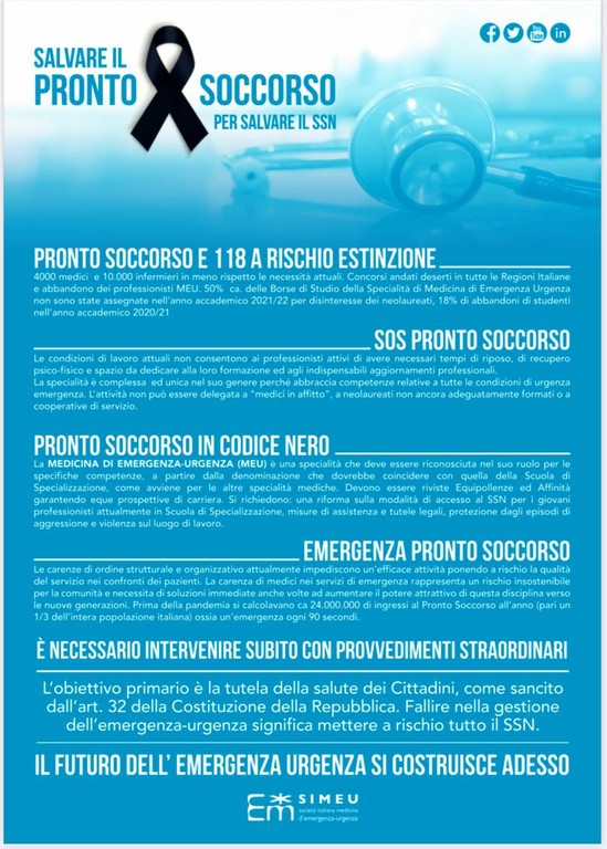 "Salvare il Pronto Soccorso per salvare il Sistema Sanitario Nazionale: questo l’obiettivo condiviso" è il pensiero dei professionisti dell’emergenza di tutta Italia.