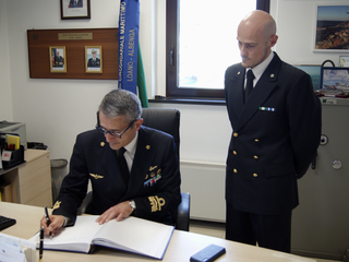 Presso lo Yacht Club della Marina di Loano, l’ammiraglio Liardo ha anche incontrato l’amministratore delegato della società concessionaria del porto, dott. Gianluca Mazza, con il quale l’ufficio Circondariale marittimo ha recentemente condotto buone iniziative a tutela dell’ambiente marino e del patrimonio sommerso, consolidando così l’ottima sinergia di intenti tra il Comando e la direzione del porto. La visita si è conclusa con la firma sul diario storico del Comando di Loano da parte dell’Ammiraglio, al quale il comandante Pisani ha voluto donare il crest dell’Ufficio Circondariale Marittimo di Loano Albenga, appositamente personalizzato per l’occasione.