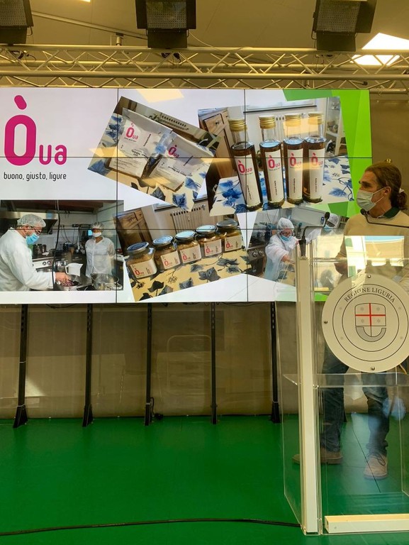 Oggi si presenta e lo fa portando in dote i prodotti del territorio che sono preparati nel laboratorio di trasformazione comunitario, e si distinguono grazie alla creazione di un brand specifico agricolo-sociale denominato 'Òua: buono, giusto, ligure'. I prodotti disponibili al momento sono quattro: le melanzane sott’olio, lo sciroppo di menta, il concentrato di pomodoro e l’insaporitore. Il progetto e i suoi prodotti sono stati presentati oggi alle 13 presso la sala Trasparenza della Regione Liguria, alla presenza dei coordinatori e partner di progetto, insieme all’assessora regionale alla Formazione Ilaria Cavo.