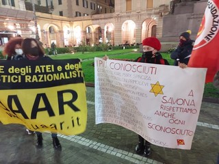 Un presidio per esprimere la propria contrarietà dopo le scritte antisemite effettuate nella notte tra sabato e domenica scorsa nel cuore di Savona, all'inizio di via Pia, lato Brandale.