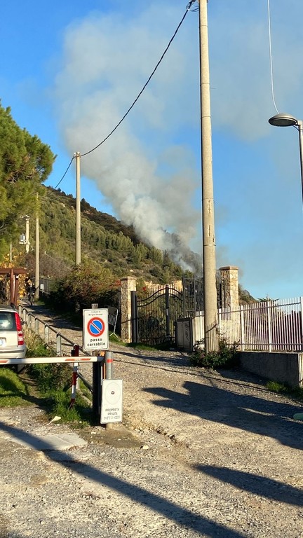 Incendio tra Verezzi e Finale sul sentiero delle Arene Candide: mobilitati Vigili del Fuoco e Aib (FOTO)