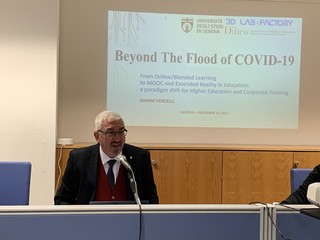 A seguire è intervenuto il professor Gianni Vercelli , Professore associato dell’Università di Genova – ricercatore nel campo dell’ELearning e Tecnologie ITC applicate. Nella relazione “Didattica a distanza: opportunità e criticità” ha offerto ai docenti presenti molti spunti di riflessione su come fruire della tecnologia in modo efficace per l’apprendimento, in questo periodo in cui si è dovuto fare “di necessità virtù” e, con un’accelerazione inimmaginabile prima della pandemia, la didattica in presenza è stata abbandonata per passare al digitale.