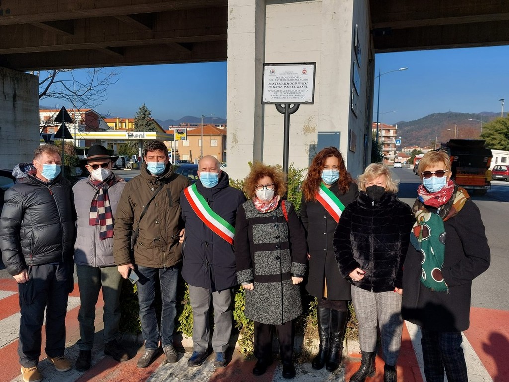 Una targa a memoria dei due giovani che un anno fa, nella notte del 22 dicembre del 2020, sono stati travolti da un treno sui binari nei pressi della stazione ferroviaria di Quiliano e Vado.