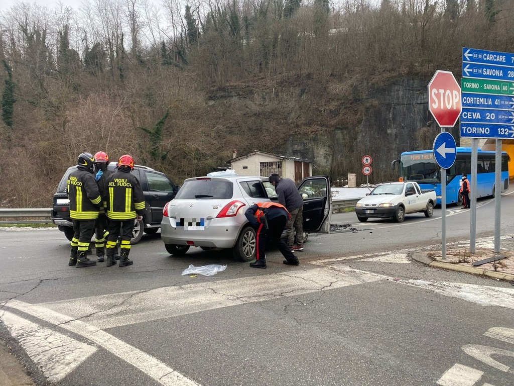 Incidente stradale attorno all'ora di pranzo a Millesimo, zona via Gabriele D'Annunzio. Secondo quanto riferito, il sinistro ha coinvolto due automobili con una persona rimasta incastrata tra le lamiere.