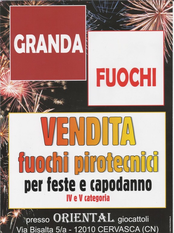 La Granda Fuochi si trova a Cuneo, in Frazione Madonna dell’Olmo e precisamente in via Valle Po’ 91°. Da lunedì 27 a venerdì 31 dicembre effettuerà un orario continuato dalle 8:30 alle 19:30