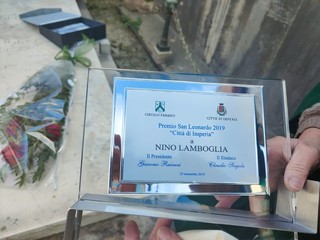 Durante la cerimonia il circolo Parasio ha consegnato simbolicamente il premio San Leonardo-citta di Imperia, assegnato nel 2019 alla memoria. "Purtroppo non l'ha potuto ritirare di persona, ci spiega la presidente del circolo Simona Gazzano, ma il raccoglimento e l'emozione non furono meno sentiti e motivati. Tutti i rappresentanti e dirigenti dell'Istituto internazionale degli studi liguri, di cui è stato il fondatore e l'ha visto impegnato per tutta una vita, erano presenti e ricordo con molta emozione quel momento. Ci ha lasciato un'eredità culturale, storica e scientifica. Una vita così impegnata che ci ha lasciato tanto per valorizzare il nostro territorio. Come circolo Parasio siamo vicini a questa realtà e abbiamo voluto naturalmente presenziare portando il nostro saluto e il nostro ricordo".