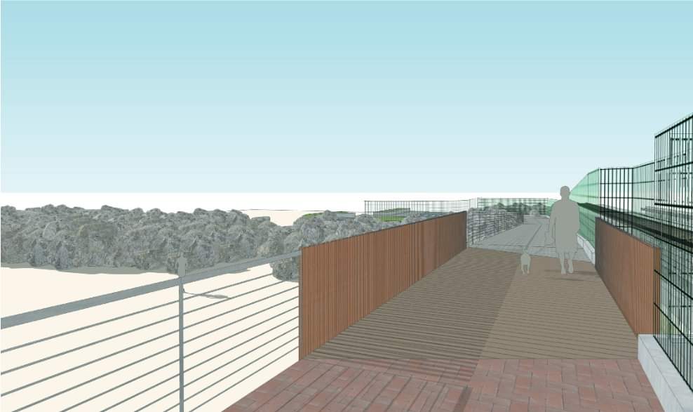 "Dal lato di Pietra Ligure, la passeggiata – di recente realizzazione – corre alla quota della ferrovia (circa 3 m sopra il livello dell’arenile) e si interrompe in prossimità del ponte ferroviario sul Rio Ciappe. Attraverso una rampa pedonale si può raggiungere la quota dell’arenile senza barriere architettoniche. Al fine di realizzare il collegamento in quota si è deciso di realizzare una passerella aerea che, partendo dal limite della passeggiata di Pietra Ligure, sormonta il Rio Ciappe senza appoggi a terra fino a raggiungere la massicciata esistente sul territorio di Loano che costeggia la linea ferroviaria" conclude Lettieri.
