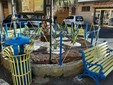 il recupero delle tre panchine, del cestino gettacarte e della ringhiera circolare che delimita l'aiuola centrale della piazza, dando loro una nuova livrea con i colori giallo e blu, che generalmente identificano la lotta contro il bullismo ed il cyberbullismo;