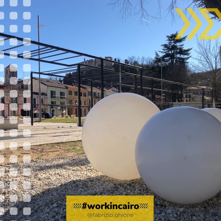 Dopo i cerchi spuntano tantissime sfere in piazza della Vittoria a Cairo Montenotte. Sono in corso in questi giorni i lavori di installazione delle "Globo Out" della Slide, una serie di "lampioni" che serviranno a decorare e illuminare le aiuole attorno a Palazzo di Città.