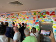 “In questo padiglione – spiega Toti - c’è la solidarietà di tutto il mondo. Chiunque sia passato di qui ha voluto lasciare un messaggio per il popolo ucraino, migliaia di biglietti scritti in ogni lingua, a cui si è aggiunto anche il nostro: la Liguria c’è, per l’Ucraina e per le famiglie in difficoltà”.