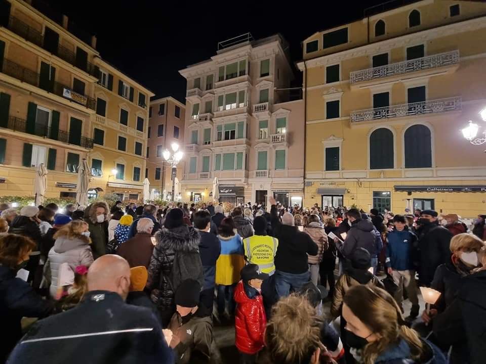 "Con la fiaccolata di questa sera la Città di Varazze non volta la faccia dall'altra parte, fa sentire la propria voce ed apre le braccia ad un popolo in fuga - prosegue il primo cittadino varazzino - Momento toccante quando la piazza ha omaggiato Hanna e Polina, profughe in scappate dalla guerra, presenti alla manifestazione, accolte dalla nostra città. Grazie a tutte le persone che hanno partecipato, al consigliere regionale Alessandro Bozzano, a don Claudio Doglio, agli assessori ed ai consiglieri comunali, alle associazioni, a tutti i bambini che hanno cantato ed a tutti coloro che sono stati presenti questa sera".