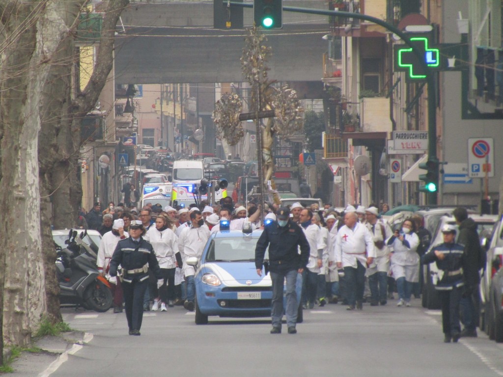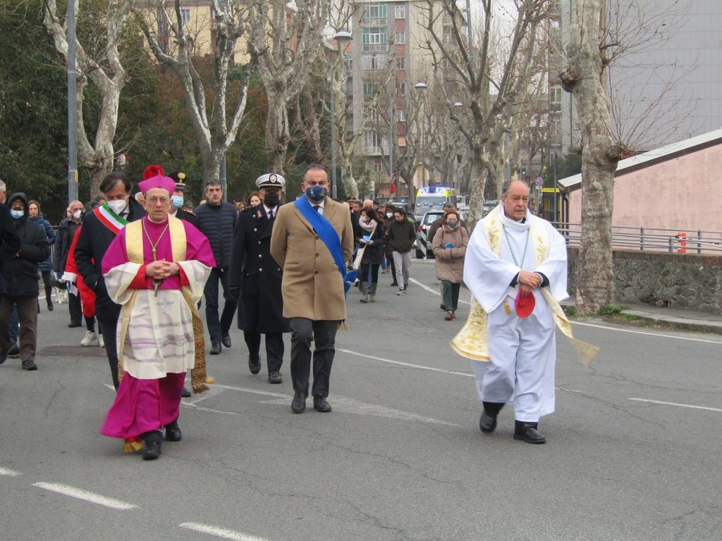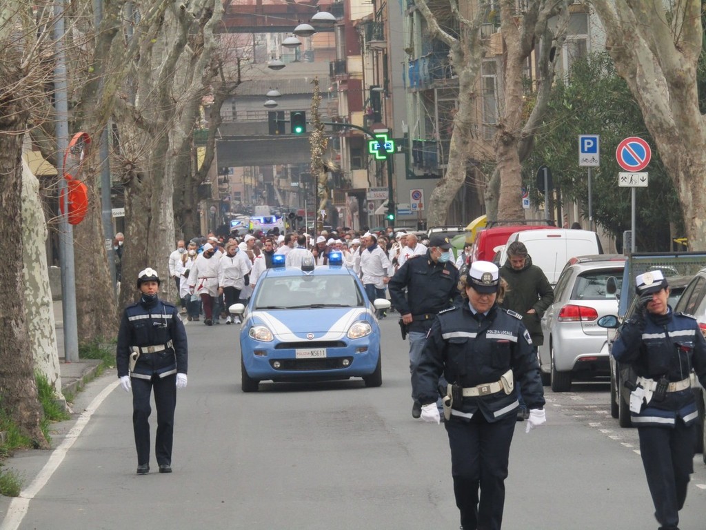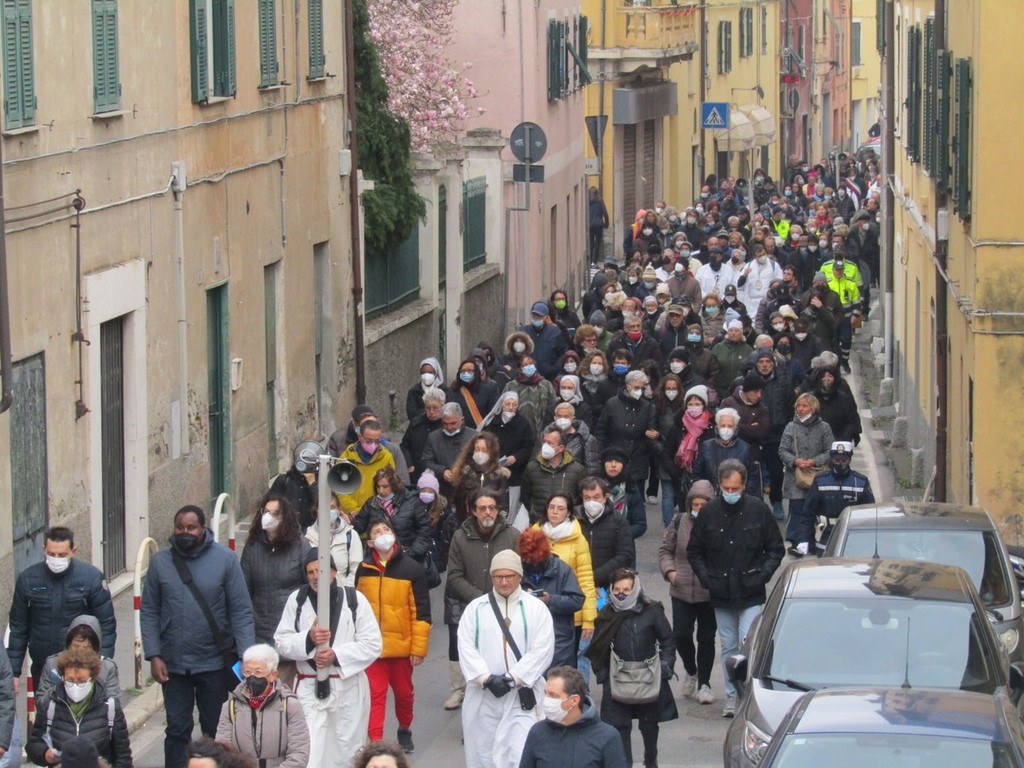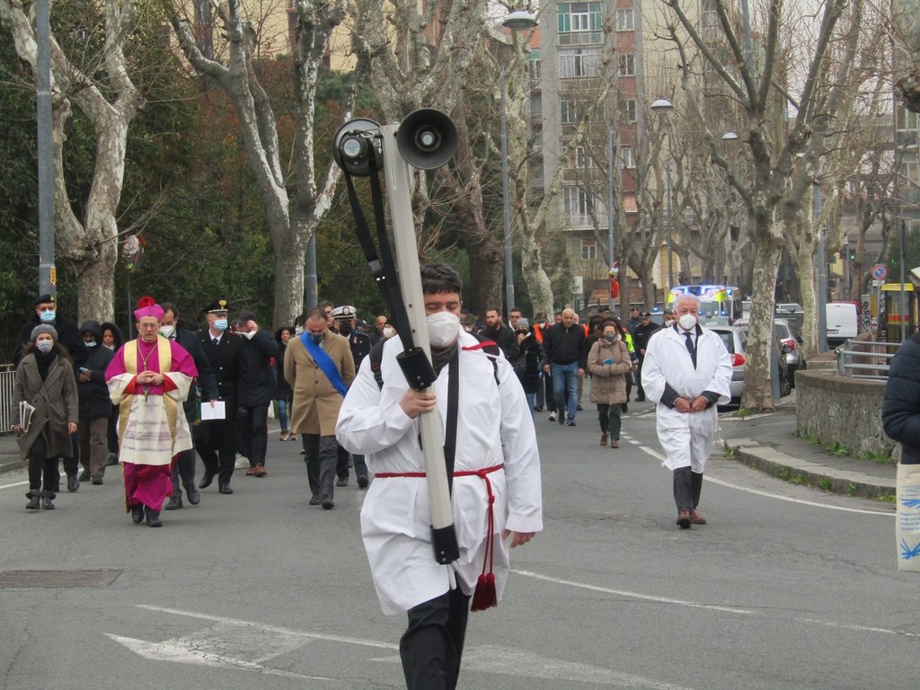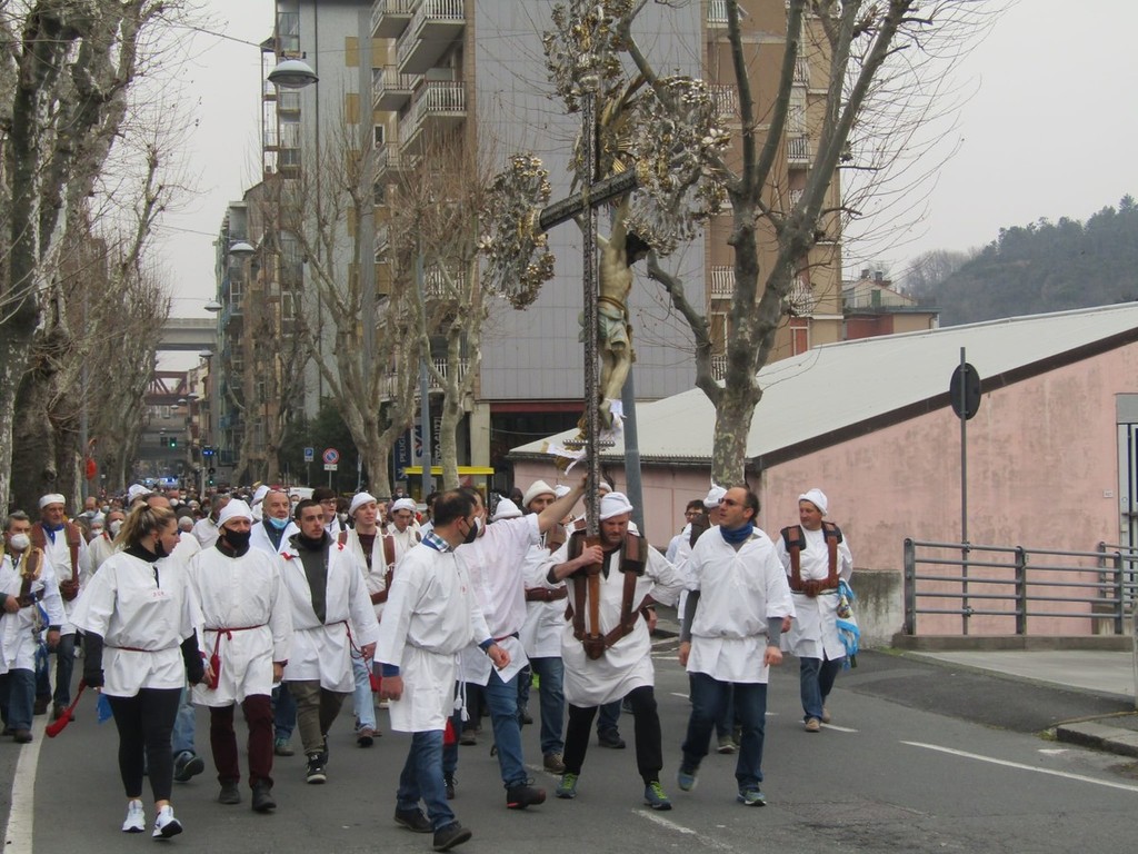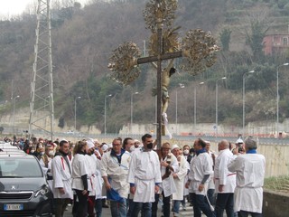 Il corteo sacro è stato aperto dal crocifisso della confraternita del Pero di Varazze e, come sempre, è stato animato dalla preghiera del rosario della misericordia e delle lodi mattutine.
