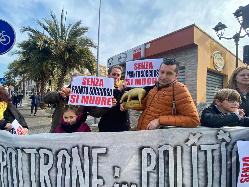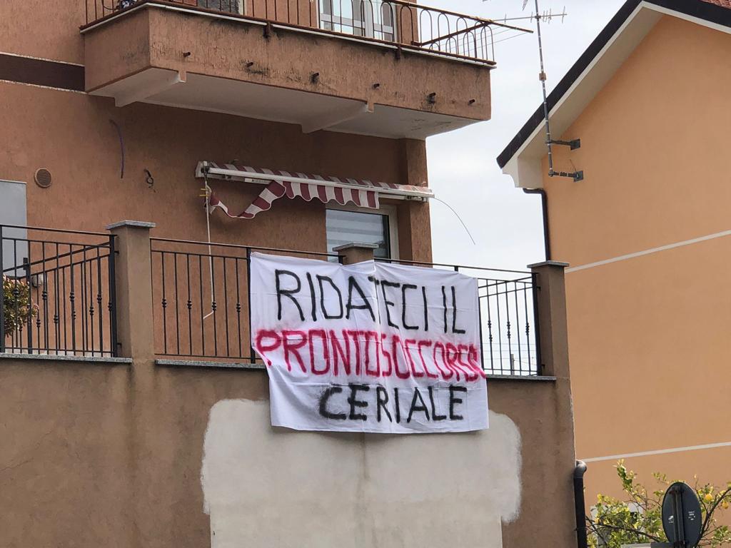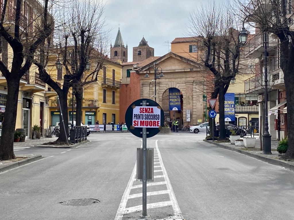 Da Ceriale ad Andora, lungo il percorso della gara ciclistica, striscioni, flashmob e “muri umani” che riportano il grido di aiuto “Senza Pronto Soccorso si Muore”.