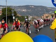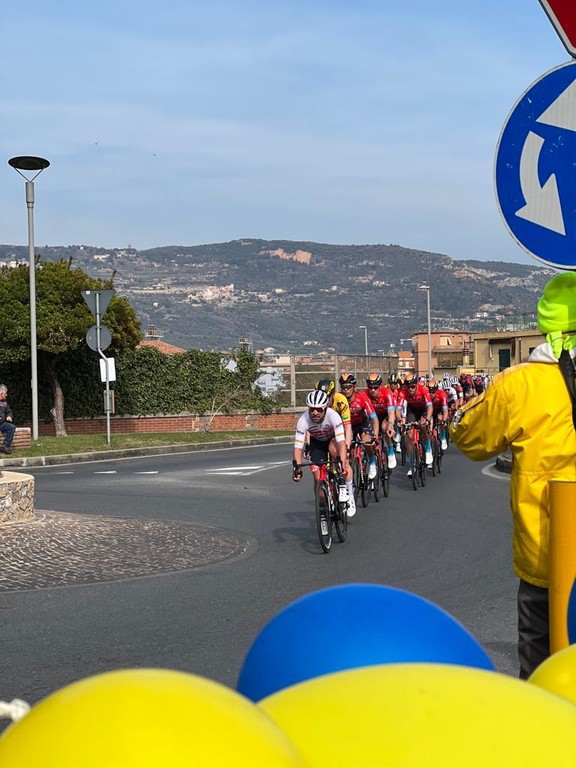 A Pietra Ligure, a far da cornice al gruppo dei corridori, sono spuntati alcuni palloncini gialli e alcuni blu, i colori della bandiera ucraina.