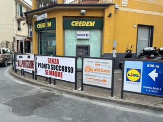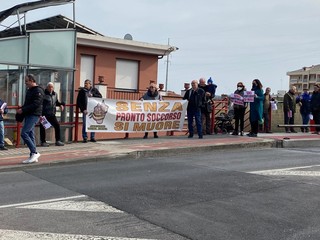 Da Ceriale ad Andora, lungo il percorso della gara ciclistica, striscioni, flashmob e “muri umani” che riportano il grido di aiuto “Senza Pronto Soccorso si Muore”.