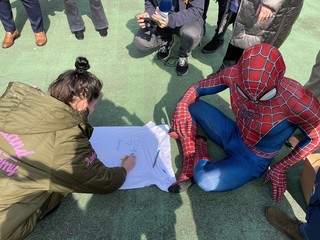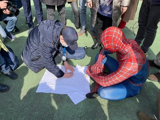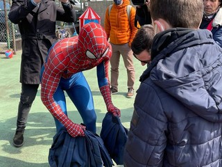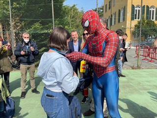 Questa mattina il presidente Giovanni Toti insieme all’assessore alla Protezione civile Giacomo Giampedrone e a Mattia Villardita, lo Spiderman savonese insignito del titolo di Cavaliere dell’Ordine della Repubblica italiana per la sua attività negli ospedali nei panni del supereroe, hanno fatto visita alle famiglie ucraine ospiti della residenza Santa Dorotea, a Genova in via Liri, messa a disposizione da Regione Liguria. Mattia ha giocato a calcio con i bambini e ha donato loro alcuni regali.