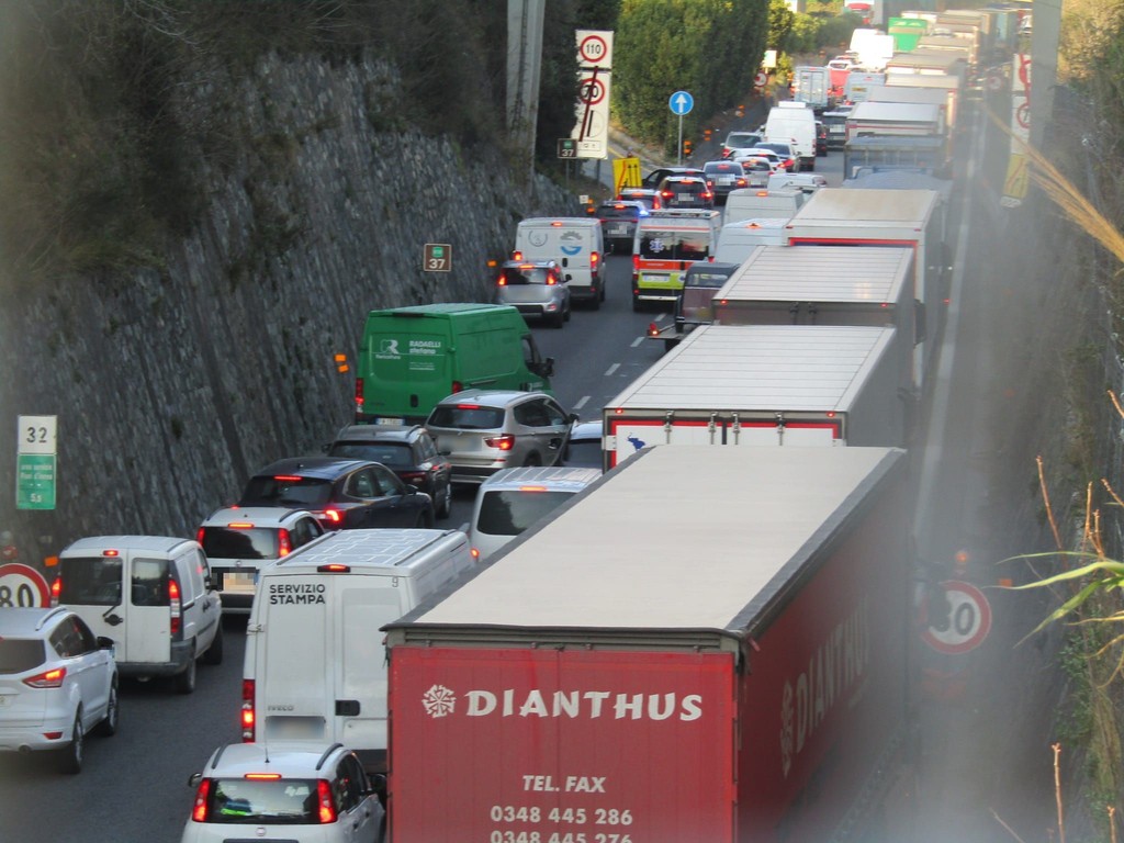 Attualmente sono 7 i km di coda, causata dai lavori, segnalati tra Savona e Varazze in direzione Genova