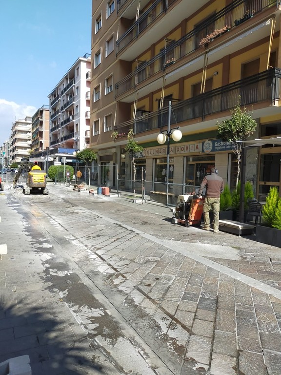 Via Doria, nel centro di Andora, chiusa al traffico per i lavori di rimozione della vecchia pavimentazione a piastrelle molto deteriorata. Si tratta di un intervento del valore di circa 50mila euro reso necessario per mettere in sicurezza il transito di persone e veicoli.