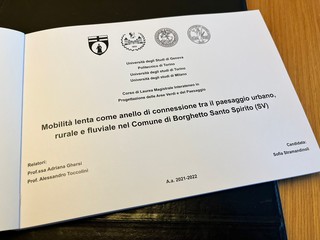 "Con l'esposizione avvenuta nella sala consiliare del Comune di Borghetto della Tesi di Laurea Magistrale in Progettazione delle Aree Verdi e del Paesaggio si è concluso il percorso accademico della neo laureata dottoressa Sofia Stramandinoli, percorso che ha visto la stretta collaborazione con gli uffici e gli amministratori comunali al fine di approfondire e proporre un progetto potenzialmente realizzabile sul nostro territorio". A darne notizia sono Giancarlo Canepa e Alessio D'Ascenzo, rispettivamente sindaco e assessore all'urbanistica di Borghetto Santo Spirito.