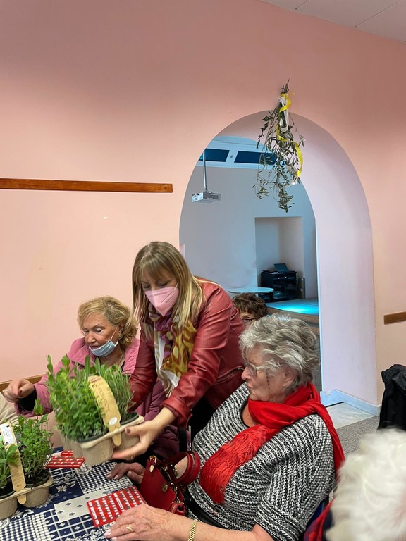 Per tutti un piccolo presente: piantine di essenze tipiche per gli ospiti della centro "L'Isola che c'è", e uova di cioccolato per quelli della Residenza Giacomo Natale.