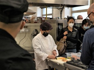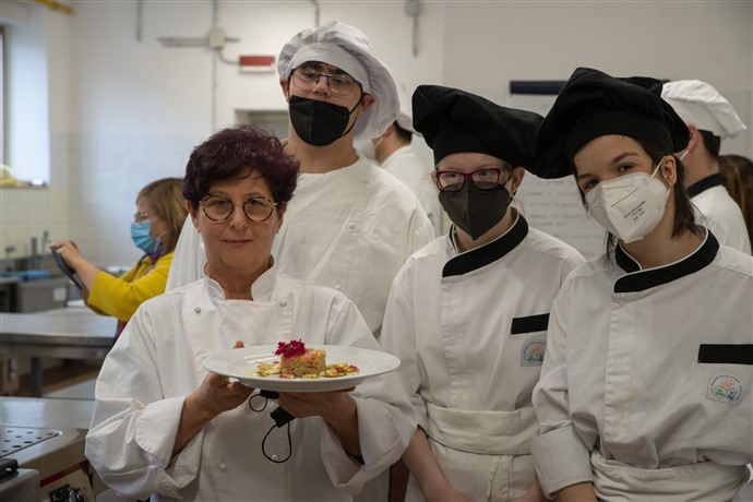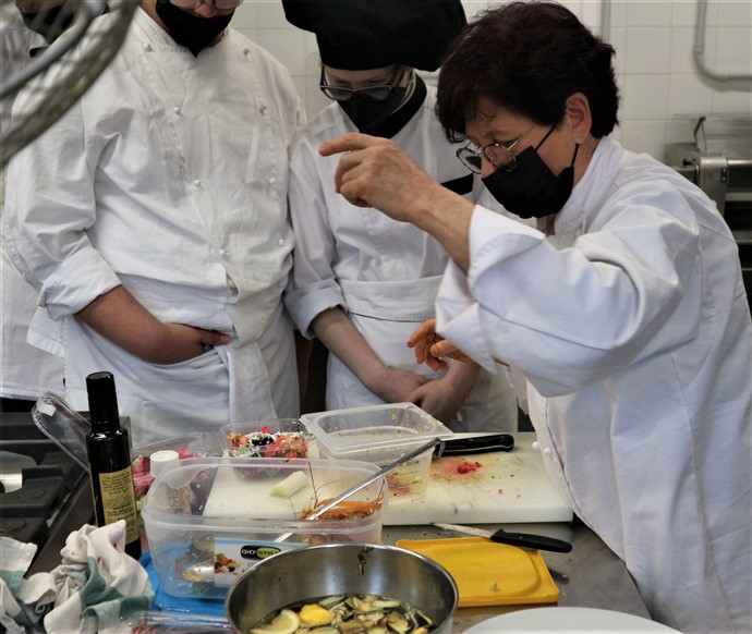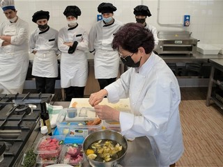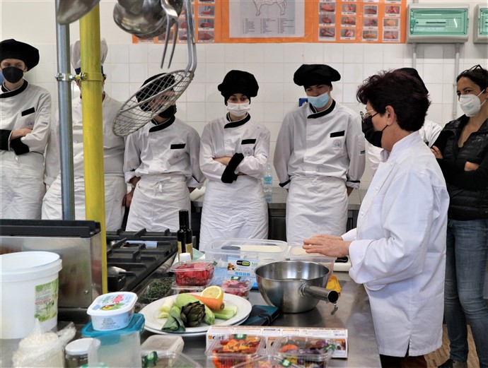In questa occasione vogliamo proporvi la ricetta che la chef Cinzia Chiappori dell’Osteria del tempo Stretto di Albenga ha proposto nel laboratorio di cucina che si è svolto all’Istituto Alberghiero “Giancardi Galilei Aicardi” di Alassio nella prima giornata.