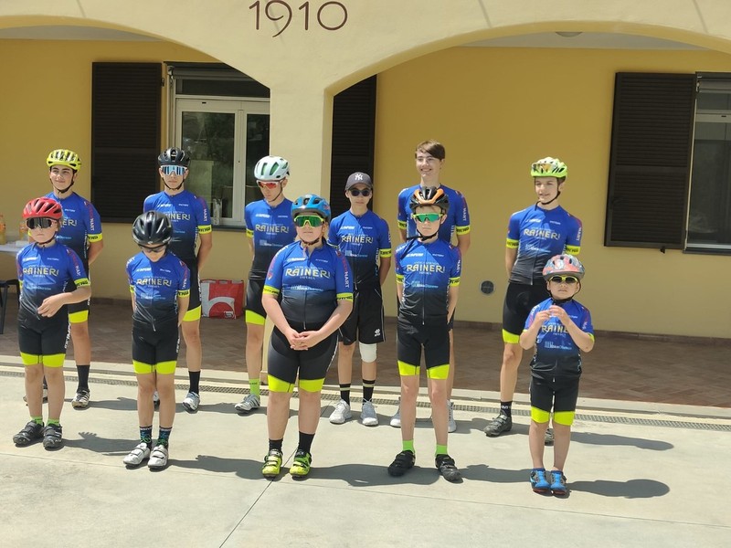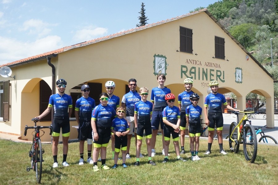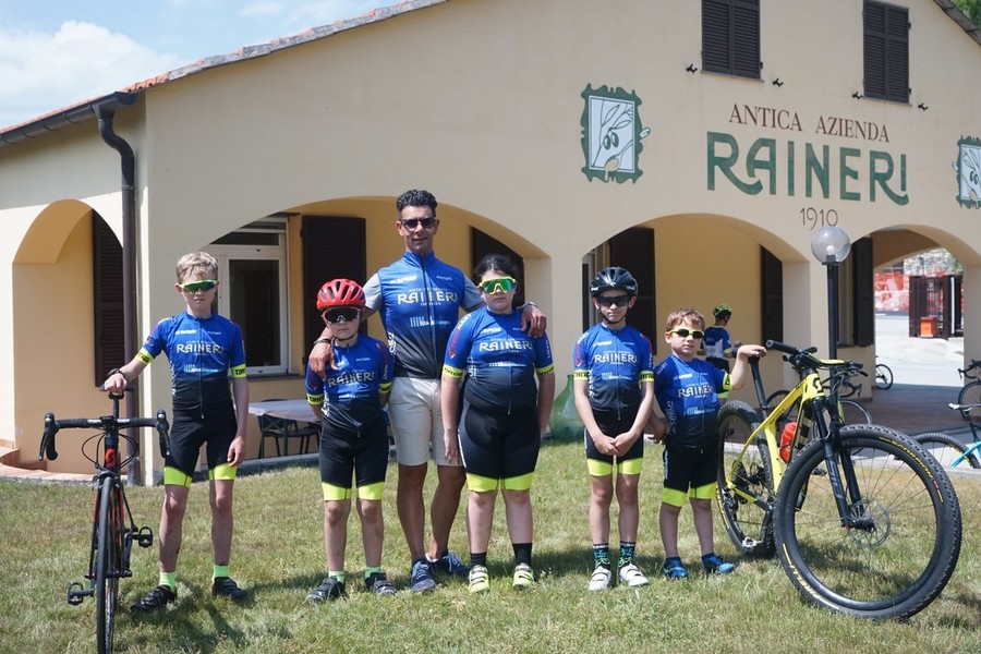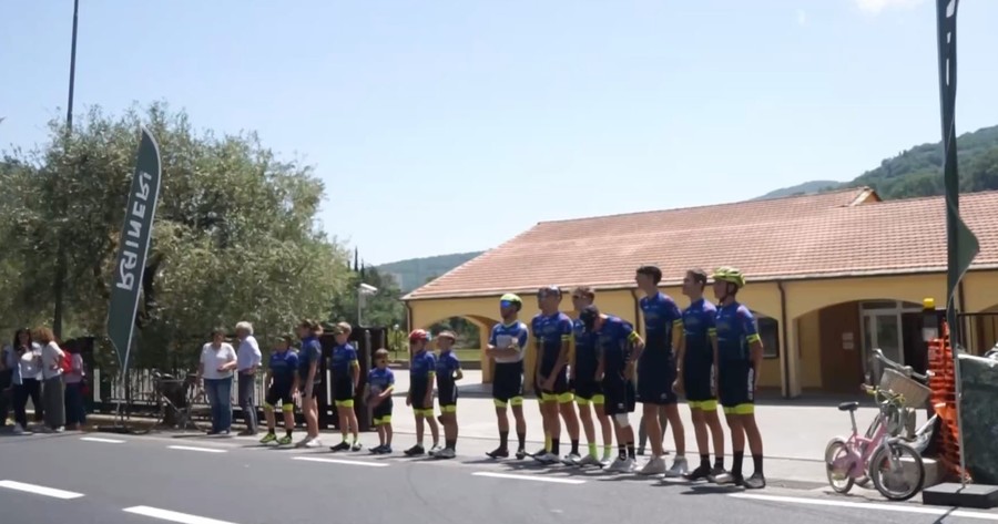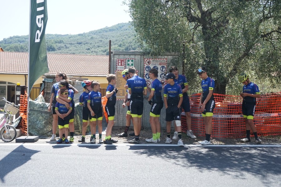 La famiglia Rinaldi, main sponsor del team ciclistico ciclistico giovanile, ha aperto le porte le porte del proprio piazzale a una rappresentanza di giovani ciclisti che hanno così potuto vedere da vicino il passaggio dei loro idoli prima che affrontassero i tornanti del Colle di Nava.