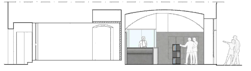 Il progetto del primo lotto del museo della città oltre allo spostamento al piano terra della biglietteria che ottimizzerà gli spazi e migliorando la funzionalità dell'accoglienza al pubblico prevede un vero e proprio percorso che accompagnerà i visitatori al front-desk della biglietteria attraverso alcuni pannelli con grafiche e indicazioni inerenti al Museo, opportunamente illuminati dai faretti esistenti.