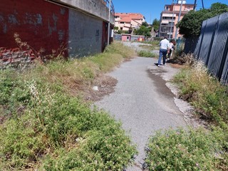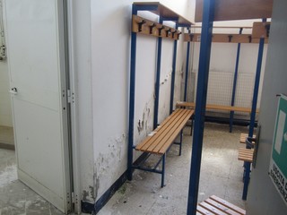 Intonaco da sistemare sia internamente che esternamente sulle tribune, spogliatoi da sistemare, soffitti sfondati, infiltrazioni con distacchi di pezzi di calcestruzzo, recinzioni divelte e erba alta.