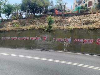 "Omettere i danni da vaccino è criminale". A Savona tornano le scritte no vax sui muri di via Valloria (FOTO)