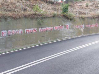 Nuovo attacco da parte di no vax, a distanza di una settimana e sullo stesso muraglione di via Valloria, la strada che dall'Aurelia porta all'ospedale San Paolo di Savona, contro vaccini e medici.