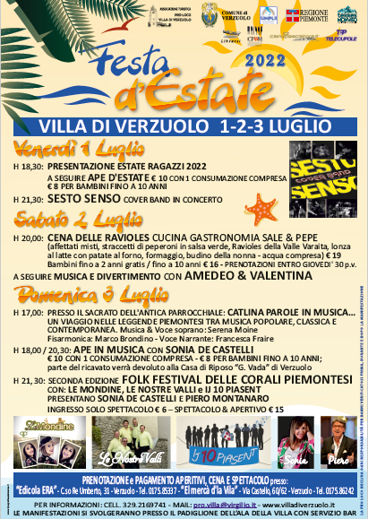 “La festa d’estate va a valorizzare le nostre tradizioni sia culinarie che musicali, grazie alla collaborazione con l’amministrazione e altre realtà verzuolesi verranno coinvolti nella manifestazioni i bambini e ragazzi ed anche il sostegno alla preziosa Casa di Riposo, tre serate di divertimento e buona cucina con i prodotti del territorio alle quali siete tutti invitati” il commento del direttivo Pro Loco