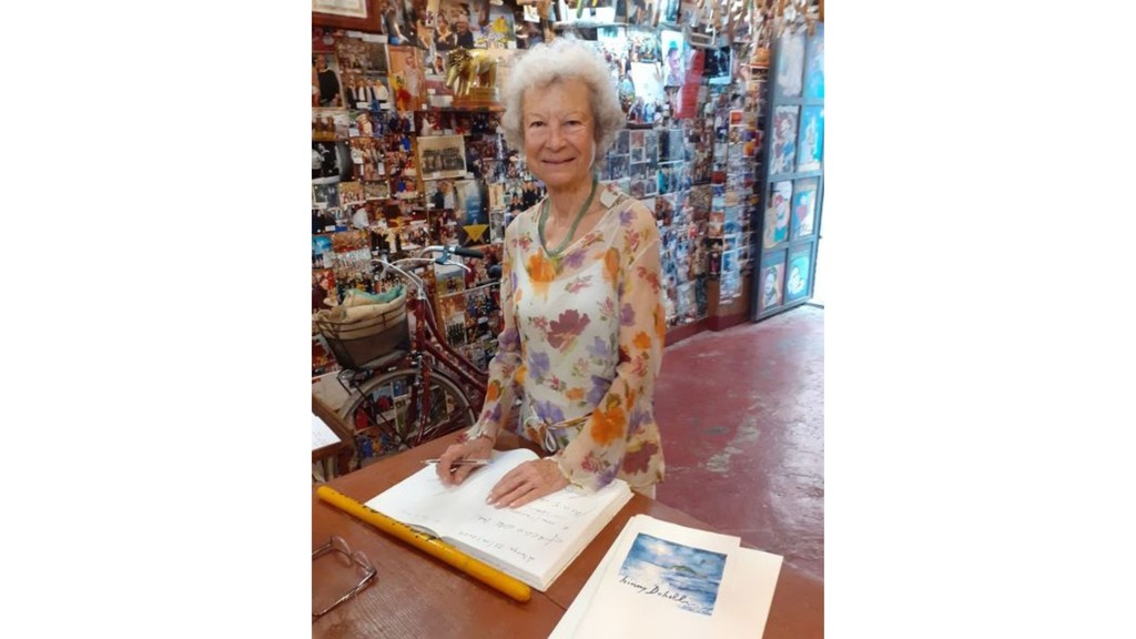 È una pittrice straordinaria, capace di catturare e fermare le sfumature più potenti del creato, che profuma di fiori e sa di mare, leggera come un suo acquerello, intensa come i colori con cui dipinge l’Isola Gallinara, ed è anche molto generosa Binny Dobelli, che ha donato ai Fieui di caruggi un acquerello delicatamente sfumato su una mattonella in ceramica che presto sarà inaugurata sul muretto di Albenga “E ghe mettu a firma!”. Il soggetto? La celebre “tartaruga”, che sembra sonnecchiare sulle acque di fronte alla foce del Centa: la meravigliosa Gallinara.