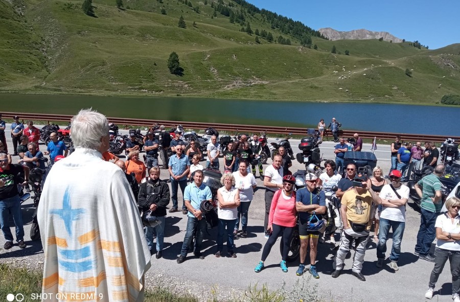 Dopo il taglio del nastro e la partenza da Argentera Villaggio Primavera i bikers hanno raggiunto il Lago, dove hanno assistito alla messa celebrata da Don Biker Mario Dompè che ha poi, come da tradizione, benedetto i caschi.