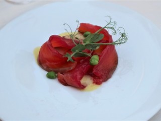 Lo chef ha una filosofia semplice basata su freschezza e originalità, che si è espressa pienamente anche nel delizioso menù della cena che prevedeva:
