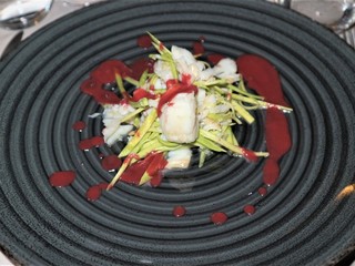 Baccalà al vapore con cruditè di zucchina trombetta e salsa esotica