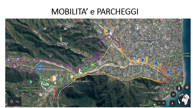 • Zone di parcheggio situate nel Comune di Albenga - utenti di FS - bus di linea. Tali persone a fine concerto si dirigeranno a piedi nella piastra di interscambio situata sulla SP 6 a nord della rotatoria nei pressi del palazzo del Comune di Villanova ove procederanno vs. destinazione con Bus shuttle;