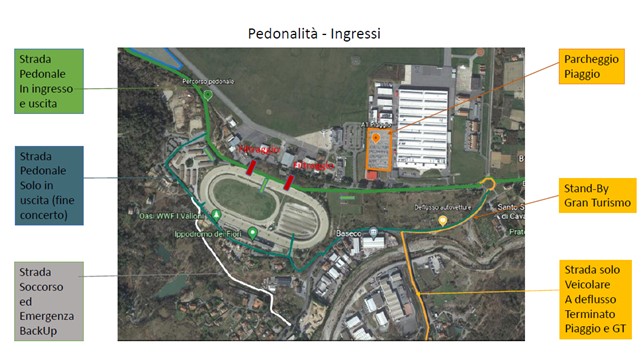 Per poter accedere all’area di concerto sarà necessario percorrere un tratto di strada interdetto alla circolazione.