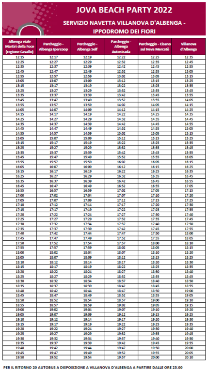 Inizio servizio navette ore 12.00 con frequenza ogni 10 minuti (dalle 17.00 ogni 5 minuti).