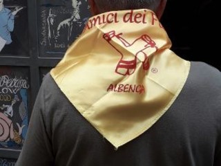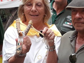 L'Associazione Nazionale Alpini, Gruppo di Albenga, ha donato una fionda speciale ai Fieui di caruggi per il loro visitatissimo piccolo museo della fionda.