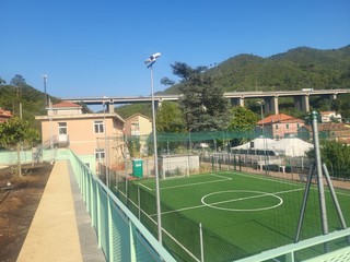 Al momento sono in corso ancora alcune lavorazioni per la piantumazione del verde, la pavimentazione per l'accesso secondario e le rifiniture per il campo da basket.