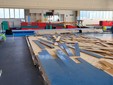 L’intervento, finalizzato alla messa in sicurezza del campo da gioco e, grazie all’allargamento di un metro in larghezza, al suo adeguamento alle norme vigenti, prevede la sostituzione della pavimentazione in legno attualmente ammalorata, con la rimozione integrale di tutta la superficie e i necessari lavori accessori quali lo spostamento della ringhiera di separazione con il pubblico, la modifica di un'uscita di sicurezza sul prospetto sud e, successivamente, la sostituzione dei serramenti del prospetto ovest al fine dell'adeguamento energetico dello stabile.
