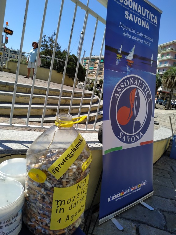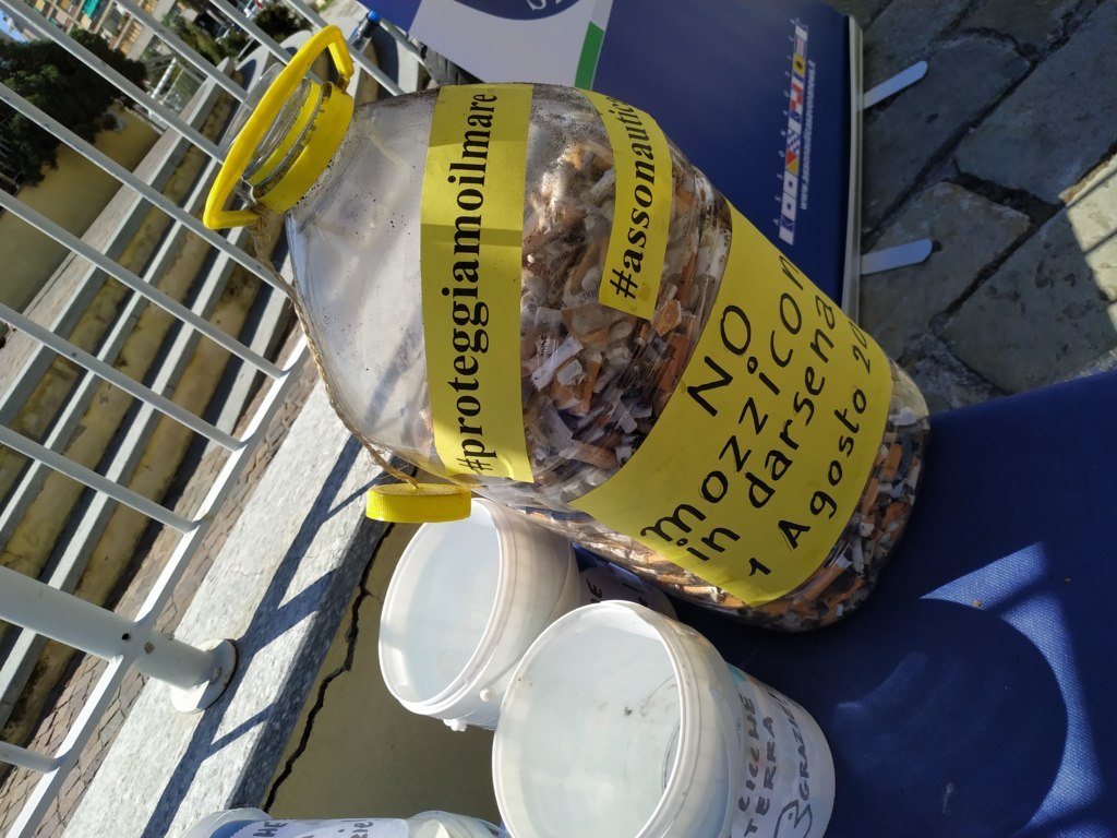 “L'operazione 'No mozziconi in darsena' si è svolta sotto un sole cocente ed è stata (purtroppo) molto fruttifera. Vi hanno partecipato 12 soci e complessivamente sono stati raccolti oltre 4000 mozziconi. Nelle vie del porto, sui marciapiedi, tra i tavolati della banchina e dei pontili, nelle aiuole”.