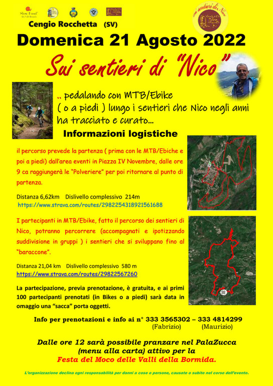 L’iscrizione a “Sui sentieri di Nico”, ai laboratori di cucina, e al concerto, sono completamente gratuiti. Ai primi 100 iscritti sui sentieri di Nico in omaggio una sacca portaoggetti.