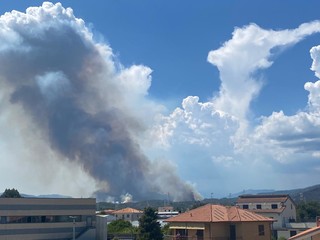 Interrotta anche il traffico da e per l'aeroporto "Panero" di Villanova. Alcuni manufatti già coinvolti dalle fiamme ma senza feriti. Soccorsi dai Vigili del fuoco anche dal resto della Liguria e dal Piemonte